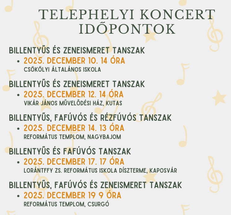 Ünnepi hangverseny és telephelyi koncert időpontok