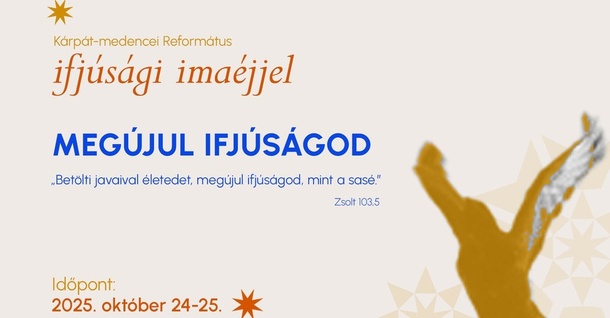 Idén is megrendezésre kerül a Kárpát-medencei Református Ifjúsági Imaéjjel 2025. október 24-én. Az esemény célja, hogy Kárpát-medence szerte egy este alatt többszáz fiatal imádkozzon együtt, legyen együtt csendességben, éneklésben, imádságban.