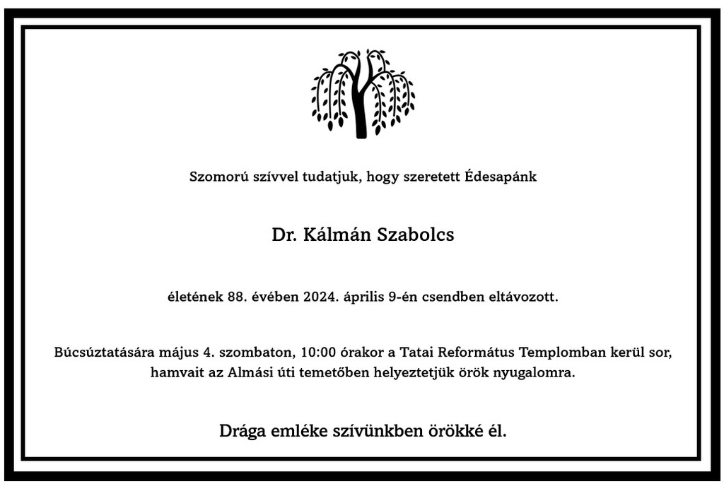 A Tatai Református egyházmegye évi rendes közgyűlését 2024. március 23-án szombaton 9.30-tól tartja Tatán a Kocsi u. 15 alatti gyülekezeti házban.