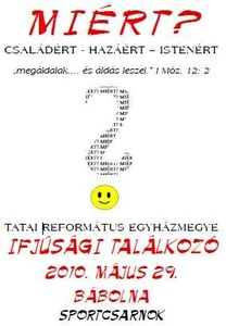 Az Egyházmegyei Ifjúsági Konferenciára Bábolnán, a Sprotcsarnokban került sor május 29-én. A központi téma: Isten, család és hazaszeretet fontossága.