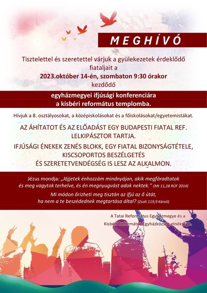 A Tatai Ref. Egyházmegye következő lelkészértekezlete 2023. szeptember 20-án, szerdán du. 16.00-tól lesz ESZTERGOMBAN a Gyülekezeti Házban (2500 ESZTERGOM Petőfi S. u. 36)