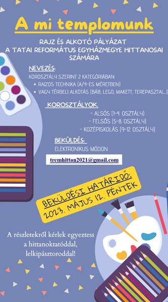 A pályázatok 2023. április 30-ig adhatóak be, papíralapon vagy elektronikusan az esperesi hivatalba.