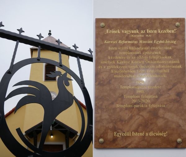 Isten iránti hálaadással emlékezünk templomunk építésének kezdetére és az eddigi felújításokra, amelyek Környe Község Önkormányzatának és a gyülekezeti tagok önzetlen adományainak köszönhetően Isten kegyelméből mindezidáig megtörténhettek. - olvasható azon az emléktáblán, melyet a környei református templomban helyeztek el még a tavalyi esztendőben, ám akkor a pandémia miatt elmaradt a hálaadó istentisztelet.