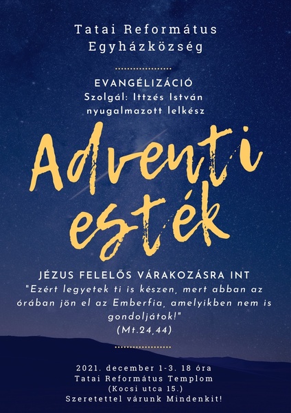 A Tatai Ref. Egyházmegye következő lelkészértekezlete 2021. november 8-án, hétfőn du. 15.30-tól lesz Ácson, a Fő u. 69. sz alatti gyülekezeti házban.