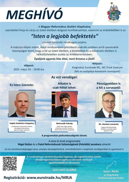 A Tatai Refromátus Egyházmegye éves közgyűlését 2025. május 9-én pénteken 16:00-tól tartja Tatán a Refromátus Gyülekezeti Teremben (Kocsi u. 15).