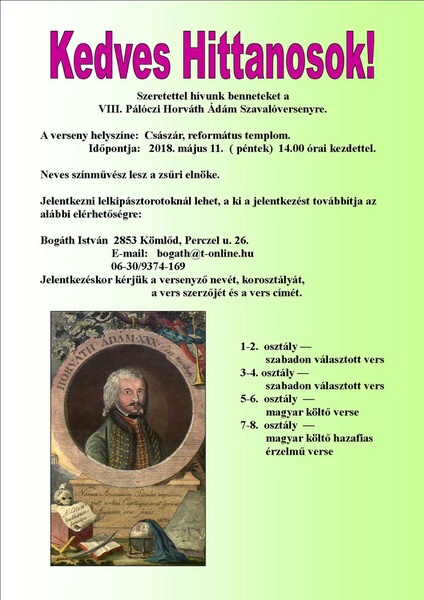 A Tatai Ref. Egyházmegye kórustalálkozóját ebben az évben Komáromban, a Jókai téri református templomban tartja 2018. április 28-án szombaton 9.30-tól.