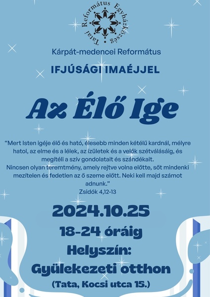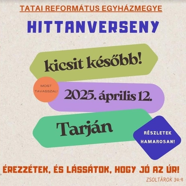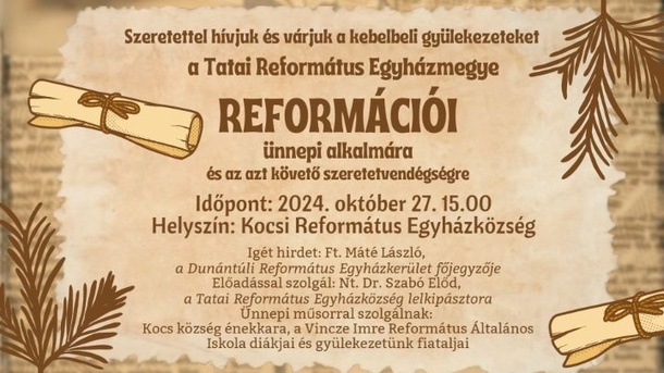 2024. október 20-án a Tatai Ref. Egyházmegyében Szószékcsere lesz. Ennek keretében egy-egy lelkipásztor másik település református templomában-imaházában szolgál.