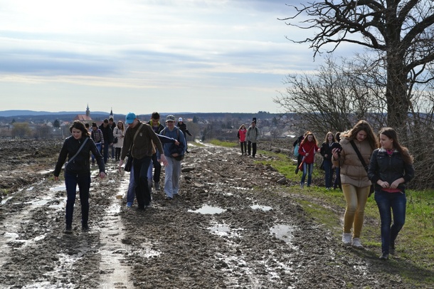 Az út első, - a faluból kivezető - szakasza viszonylag jól teljesíthető volt. Ám amikor a szántóföldek közé értünk bizony már szükség volt a jó és strapabíró lábbelikre. Sőt voltak olyan szakaszok ahol a nagy sár miatt komoly egyensúlyozó készségről is bemutatót kellett tartatni. Az út a két falu közt egyébként csodálatos volt, a zöldellő vetések látványa felüdülést jelentett az elmúlt időszak viszontagságos időjárása után.
