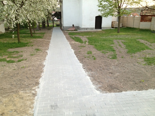 Láttuk, hogy a régi járda elhasználódott, összetöredezett, a gépkocsik parkolására használt terület esős időben használhatatlan, a kerékpárral érkező gyülekezeti tagok nincs hol tárolják kerékpárjaikat az istentiszteletek és alkalmak ideje alatt, nincs egy pad, ahol leülhetne az ide látogató az udvaron, s a parókia verandájának járólapjain is meglátszik az idő múlása...