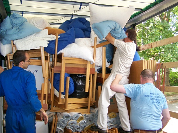 Az ötödik napon megérkezett a kamion melynek hatalmas belső terét 9 órai megfeszített munkával töltöttük meg az általunk kiszerelt dolgokkal. Az összegyűjtött anyagok egy része helyhiány miatt egy újabb fuvarig várakozni kényszerül. Másnap már „csak" a tizenkét órás autóút állt előttünk.