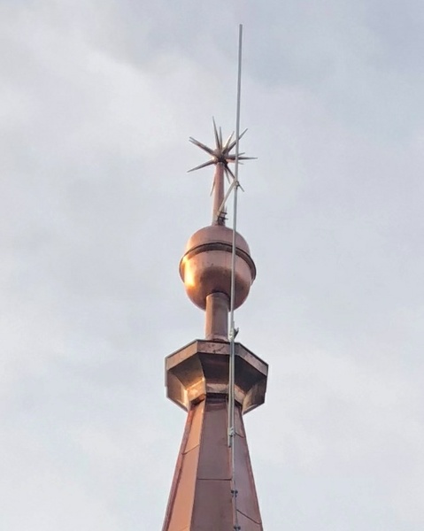 A református templom a település minden részéről látható. A téli napsütés aranyló fénnyel vonta be az új alkotást. Ragyog a torony, legfelül az iránymutató csillaggal.