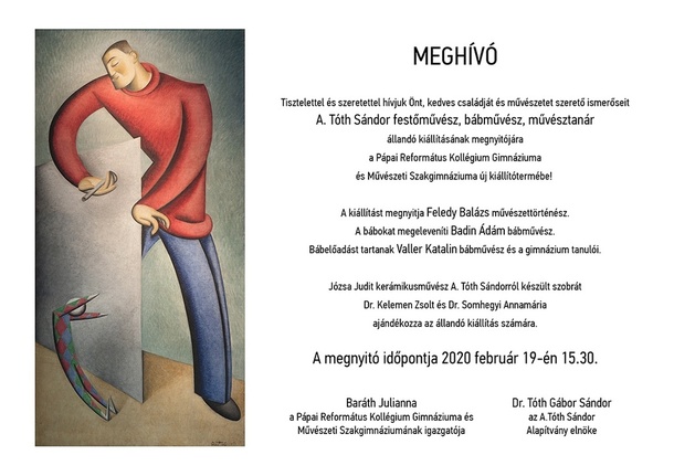 A. Tóth Sándor művésztanár állandó kiállításának megnyitójára kerül sor A Pápai Református Gimnázium új kiállítótermében 2020. Február 19-én 15.30-kor.