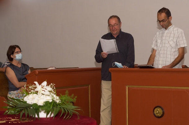 A program következő részében a bielefeldi evangélikus gyülekezet képviseletében Reinhard Fischbach szólt az egybegyűltekhez. Tolmácsolta az egész gyülekezetének köszöntését és kifejezte mennyire örül a gyülekezet hogy egy templomban szolgálja tovább Isten országát orgonájuk.