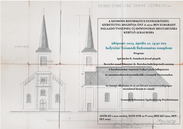 A szomódi egyházközségben hálaadó isentisztelet lesz 2023. április 22-én szombaton 14.30-tól.