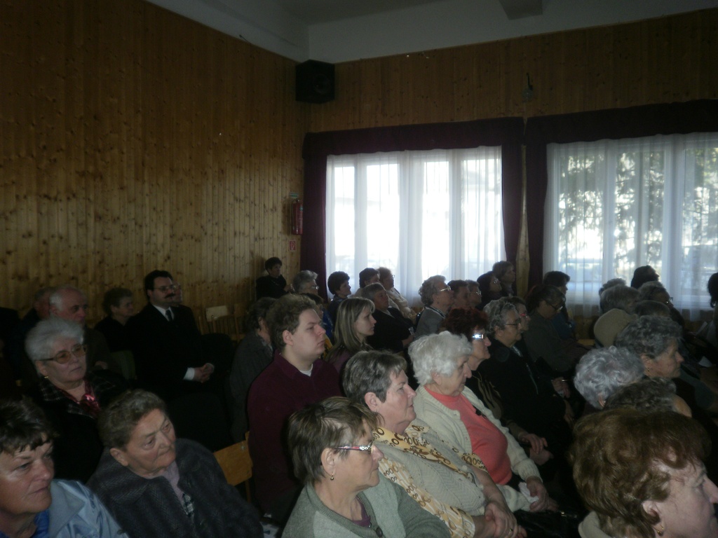 A vérteskethelyi Művelődési Ház nagyterme zsúfolásig megtelt lányokkal, asszonyokkal. Számításaim szerint közel 200-an voltunk.