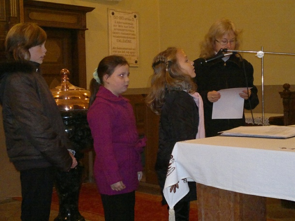 A helybeli lelkész köszöntése után a legkisebb hittanosok közül néhányan Ráday Pál: Az Atyaisten dicsérete című versét mondták el, majd Gerencsér Blanka szavalata következett, Wass Albert egy versrészletével.