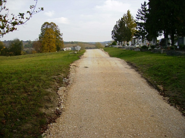 A szintén lábatlani székhelyű Silocem Kft. ügyvezetője, Teller Péter a munkálatokhoz szükséges követ biztosította. Ezzel régi vágyunk teljesült, hiszen sokan megtapasztaltuk, különösen esőzések alkalmával, milyen nehézségek között tudtunk közlekedni és temetési szertartást végezni. További terveink között szerepel az út kövezésének folytatása egészen a műútig, valamint egy parkolóhely kialakítása is, melyhez a területet a Holcim Hungária Zrt. már engedélyezte számunkra.
