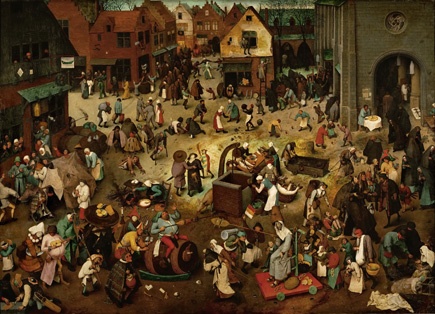 Isten kezének munkáját néha akkor látjuk csak meg, amikor a szent és a profán egymás mellett tűnik fel. Ifj. Pieter Brueghel „The Fight Between Carnival and Lent” (A farsang és a böjt csatája) c. művében óriási ellentétek ütköznek egymásnak.